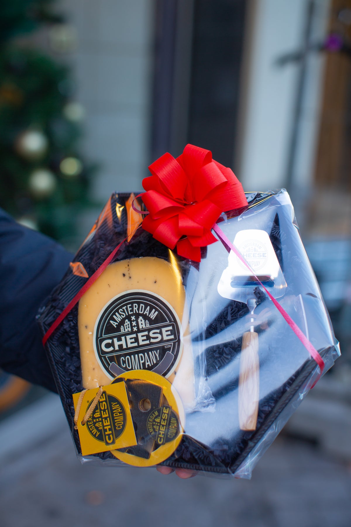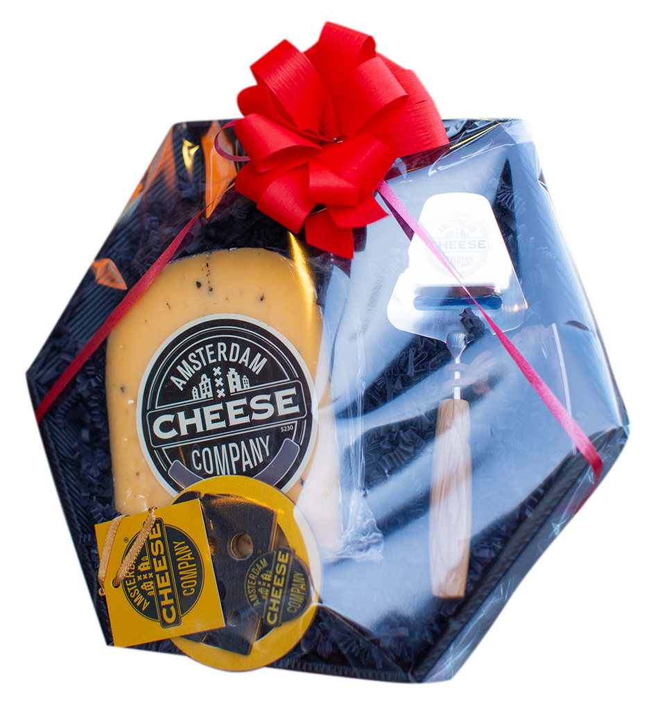 A mini cheese slicer makes serving effortless, and a wooden cheese ornament adds a little Amsterdam charm to the mix.